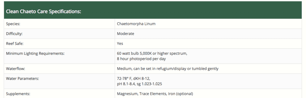 It also purposes as a great hiding place and reproduction area for copepods. Chaetomorpha is not an expensive macroalgae. You can buy a jar for $20. It will grow fairly quickly under proper lighting and you will need to harvest it regularly to remove the excess nutrients from your tank.