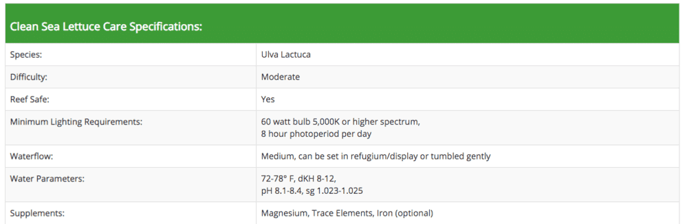 Ulva Sea Lettuce is one of the faster-growing macroalgae that you can keep. Sea lettuce is very hardy and will remove excess nutrients from your tank easily. It actually prefers to be in tanks with high nutrient levels and high lighting.