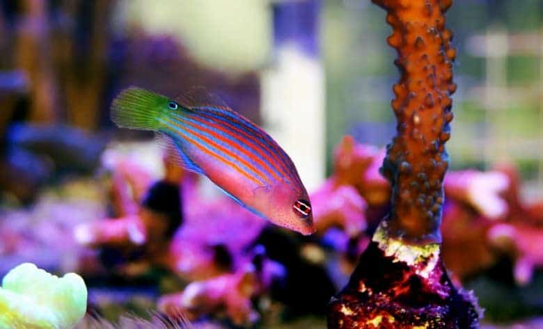 Six line wrasses are one of the most sought-after saltwater aquarium fish thanks to their brilliant colors, ease of care, energetic personalities, and the fact that they are reef safe. In addition, these fish will often eat pests such as bristle worms or pyramidellid snails, making them a welcome addition to the aquarium.
